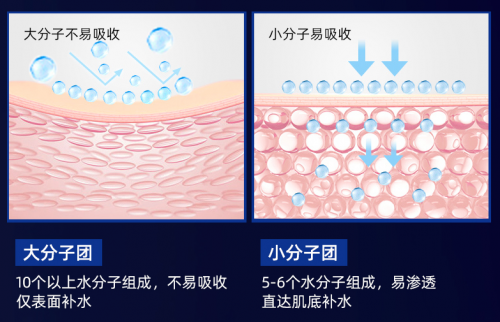 通常來說,肌膚對水的吸收非常挑剔且肌膚通道非常狹小,唯有小分子團水才能自由通暢的進(jìn)入肌膚深處補水,領(lǐng)肌膚快速充盈水嫩起來。