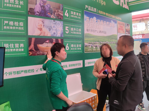 除了試吃的羊毛肚之外,展位上還整齊擺放著招財(cái)羊毛肚、羊肚頭、一斗火鍋底料等包裝精致的食材,方便食客們現(xiàn)場采購,也吸引了眾多有意向的加盟商了解詢問。