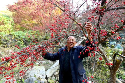 國(guó)華家房前屋后都是山茱萸,滿樹紅果,緋紅欲滴,累累紅果如紅瑪瑙掛在枝頭。談起山茱萸,國(guó)華說(shuō),山里土地少,人勤快,冬春時(shí)節(jié),有空閑就栽樹,公路邊,山坡上,田埂旁,河灘地,溝溝壑壑,房前屋后都栽上山茱萸,我們東坪是宛西制藥廠的基地。說(shuō)到這里,他崇敬地說(shuō),老百姓都感謝孫耀志,他的宛西藥廠(仲景宛西制藥)老百姓服氣,投資扶持栽樹建基地,高價(jià)收購(gòu)棗皮(山茱萸),外地一斤賣二十多元,我們村的棗皮一斤能賣四十多元,我家一年收千把斤,收入四萬(wàn)多元。孫耀志還做善事,幫我們蓋學(xué)、修路,誰(shuí)家孩子考上大學(xué)了,他給學(xué)費(fèi),就連小學(xué)生每年還資助五百塊,孫耀志對(duì)東坪有大恩!聽到國(guó)華稱贊孫耀志,我心中感嘆,俗話說(shuō)無(wú)商不奸,大約是說(shuō)商人會(huì)算計(jì)。我知道,孫耀志也會(huì)算計(jì),但老孫不奸,以誠(chéng)信立本,以寬厚著稱,帶著宛西制藥一步一步成長(zhǎng),享譽(yù)國(guó)內(nèi)外。老百姓心里有桿秤,誰(shuí)對(duì)他好,他會(huì)記你一輩子!