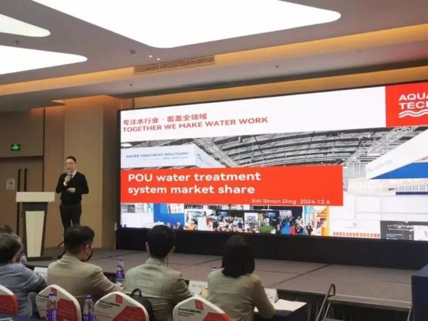 會上銳昂中國總經理丁鵬以主題“凈水系統(tǒng)全球市場占有率”發(fā)表了主題演講,分別從凈水水處理系統(tǒng)市場概況、過濾器市場概況、過濾器的區(qū)域洞察三個方面分享了國際凈水市場的現狀和趨勢,并介紹了 Aquatech China 第十六屆亞洲水技術展覽會(以下簡稱:Aquatech China 水展)在2024年將在原有基礎上創(chuàng)新升級。