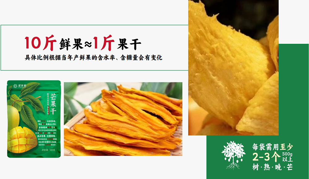 今年9月,項(xiàng)目團(tuán)隊(duì)在普洱咖啡基地的考察中發(fā)現(xiàn),種植在咖啡園的芒果口感獨(dú)特,濃郁香甜,同時(shí)還有一股淡淡的椰香。當(dāng)?shù)卮迕駛冇脗鹘y(tǒng)的原切原制工藝加工鮮芒果,制成天然芒果干,整個(gè)過程中完全不加任何添加劑,既保留了原果天然香甜,芒香四溢,濃郁回甘的味道,又能有區(qū)別于普通調(diào)制甜膩芒果干的別致口感。