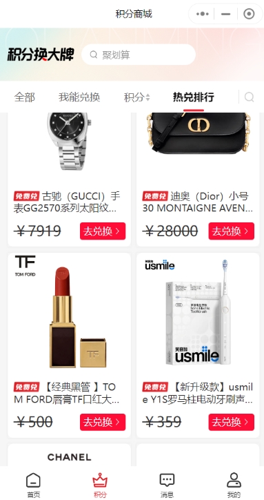 沒(méi)錯(cuò),你沒(méi)看錯(cuò),就是大牌!積分免費(fèi)兌大牌!只要你積分足夠,大牌好物免費(fèi)兌!