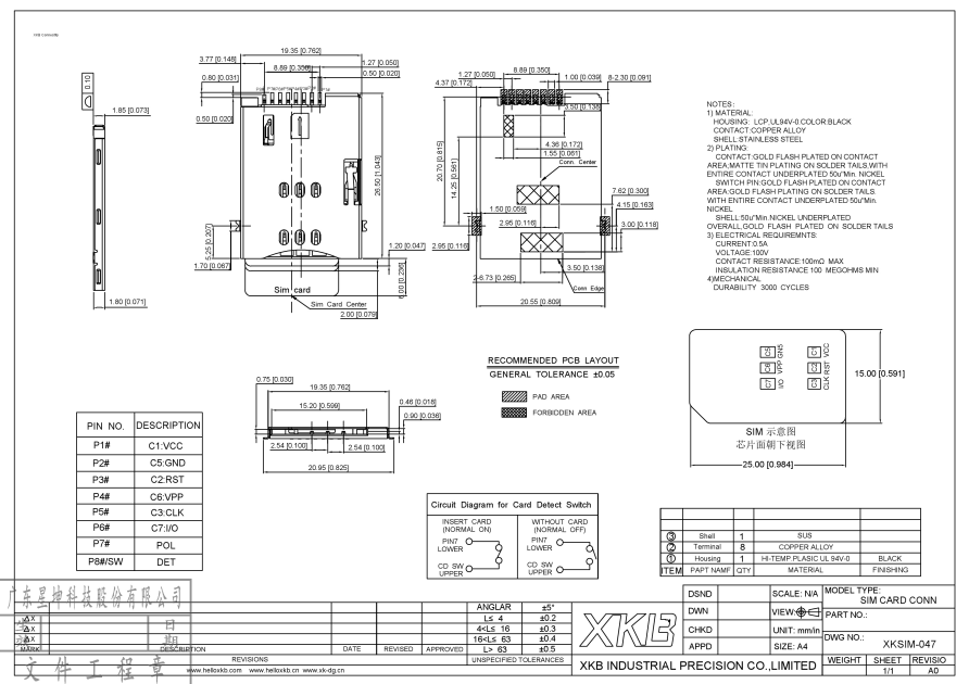 XKSIM-047 卡座連接器的 PIN 數(shù)為 8,滿足了現(xiàn)代設(shè)備對高速數(shù)據(jù)傳輸和穩(wěn)定連接的需求。其外形尺寸為 W26.5XD19.35XH1.8,緊湊的設(shè)計使其在空間受限的情況下仍能輕松安裝。