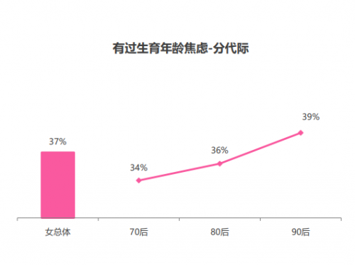 每到年關(guān),婚戀觀念相對保守的90后父母,就扛起了催生催孕的“大旗”。雖然大家不愿意承認(rèn)一個嚴(yán)峻的事實(shí),但數(shù)據(jù)卻不斷告訴大家一個事情,那就是“留給90后的時間不多了”。除了之前提到“婚戀年齡焦慮”之外,“生育年齡焦慮”人群中,90后女性也是“最焦慮”人群?!秷蟾妗凤@示:整體女性被訪者中,近四成有過生育年齡焦慮;其中,生育年齡焦慮整體呈明顯上升趨勢,39%的90后女性都有過生育年齡焦慮,且焦慮加深速度不斷加快,社會整體對于“生育年齡焦慮”愈發(fā)嚴(yán)重。