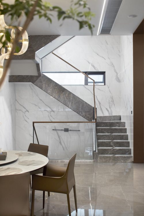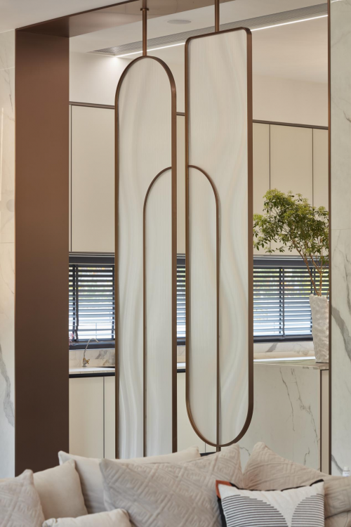 簡約的玄關(guān)以大理石巖板紋搭配,玻璃鏡條和燈光的設(shè)置,傳遞純凈簡潔的氣息,線條優(yōu)美,創(chuàng)造了一種優(yōu)雅、永恒的空間感。