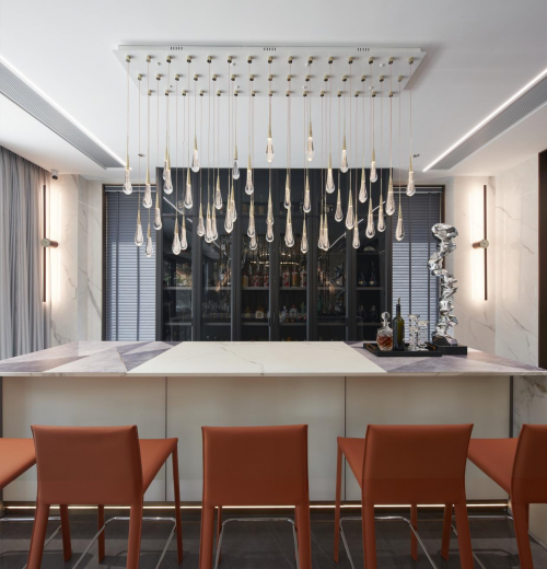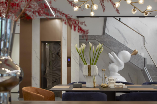 室內(nèi)是平靜,輕盈,輕奢家具和燈光結(jié)合了極簡主義。內(nèi)部的特征通過仿石巖板、布藝和金屬等元素來強(qiáng)調(diào),無論是大面積的表面還是在細(xì)節(jié)上,設(shè)計(jì)師都追求純凈和簡潔。