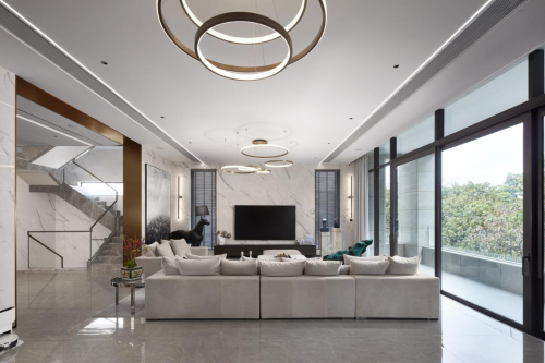 客廳這里沒有多余的裝飾,細(xì)微的色調(diào),豐富的紋理和藝術(shù)品,每個(gè)設(shè)計(jì)過程都是獨(dú)特的,整體簡約,帥氣、時(shí)尚。