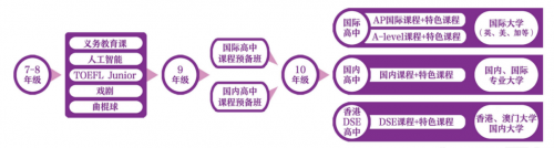除國(guó)家義務(wù)教育階段所有課程外,還融合了英文戲劇、小托福課程(TOEFL Junior)、人工智能特色課程等英國(guó)強(qiáng)化課程以及特色課程。