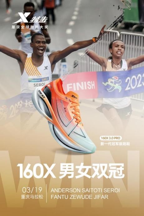 也正是憑借品牌的匠心打造,以及強(qiáng)大的產(chǎn)品實(shí)力,特步不僅受到了國(guó)內(nèi)專業(yè)跑者的高度認(rèn)可,國(guó)外跑者也同樣傾向于選擇其作為自己的“戰(zhàn)靴”。比如在2023重慶馬拉松中,埃塞俄比亞選手ANDERSON SAITOTI SEROI就以2小時(shí)11分55秒的矚目成績(jī),成功奪得了男子全馬冠軍。而在女子全馬比賽中,埃塞俄比亞選手FANTU ZEWUDE JIFAR也同樣穿著特步160X 3.0 PRO拿下了冠軍。值得一提的是,截至目前,特步已經(jīng)助力49名選手成功拿下了228個(gè)冠軍頭銜,“冠軍跑鞋家族”實(shí)在名不虛傳!