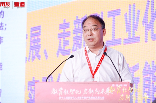 中國高等教育學(xué)會副會長、秘書長姜恩來在致辭中提出,在數(shù)字化時代,教育發(fā)展的新動能新優(yōu)勢就在于與信息技術(shù)的深度融合,實現(xiàn)數(shù)字化轉(zhuǎn)型升級。這為探索產(chǎn)教融合發(fā)展新模式,推動教育要素、產(chǎn)業(yè)要素和創(chuàng)新要素融合創(chuàng)新指明了前進(jìn)方向,提供了根本遵循。他表示,數(shù)智化人才培養(yǎng)暨產(chǎn)教融合發(fā)展大會連接了政 府、高校、行業(yè)企業(yè)等多方主體,匯集了多方智慧,總結(jié)了豐富經(jīng)驗,搭建了校企合作、校校合作的交流平臺,將人才培養(yǎng)與產(chǎn)業(yè)發(fā)展融合,為新時代人才培養(yǎng)做出了積極貢獻(xiàn)。姜恩來指出,培養(yǎng)數(shù)智化人才要聚焦普惠教育服務(wù),創(chuàng)造更加包容公平的學(xué)習(xí)環(huán)境;要發(fā)揮產(chǎn)業(yè)優(yōu)勢,深化產(chǎn)教融合協(xié)同育人;要以數(shù)智化為抓手,全面提高人才培養(yǎng)能力。