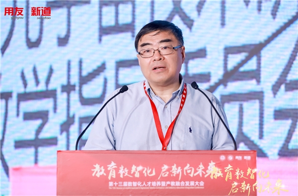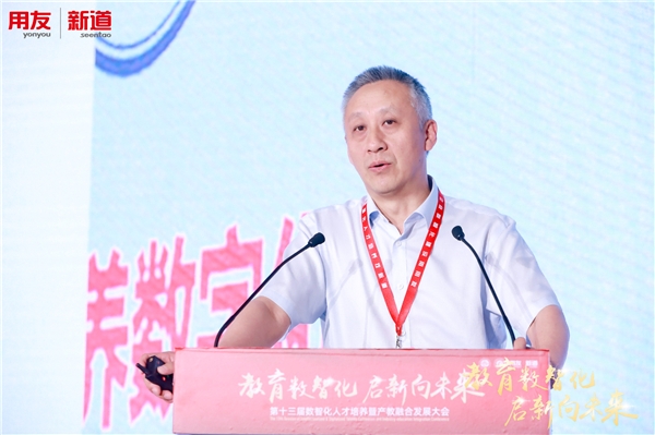 新道科技股份有限公司副總裁賈大明以“教育數(shù)智化啟新向未來”為題進(jìn)行演講。他表示,數(shù)字中國已經(jīng)走深走實,數(shù)字教育正在開啟新程,教育數(shù)智化將走向數(shù)智化、融合化、協(xié)作化、國際化。突破路徑依賴,跳出教育看教育數(shù)智化,立足全局看教育數(shù)智化。教育數(shù)智化的核心是教學(xué),教育數(shù)智化不是單純的智慧校園,不是技術(shù)與教育的簡單疊加,而是對教育深度的變革重塑。賈大明介紹,新道科技打造了數(shù)智工科、數(shù)智財經(jīng)、數(shù)智財經(jīng)、新雙創(chuàng)四大數(shù)智教育體系以及DBE Cloud 數(shù)智實踐平臺,AIE數(shù)智商業(yè)綜合實踐平臺,新道教育元宇宙實驗實訓(xùn)平臺,青椒課堂平臺,S+ Cloud認(rèn)知實踐平臺五大產(chǎn)品。新道科技以數(shù)字產(chǎn)業(yè)領(lǐng)跑教育數(shù)智化,從內(nèi)容層、應(yīng)用層、平臺層、環(huán)境層四個方面為院校提供校級數(shù)智化教學(xué)改革方案。他表示,教育數(shù)智化需要攜手產(chǎn)業(yè),共同完成范式躍遷;并擁抱頭部企業(yè),立足數(shù)字中國,服務(wù)產(chǎn)業(yè)升級,共創(chuàng)數(shù)字教育。