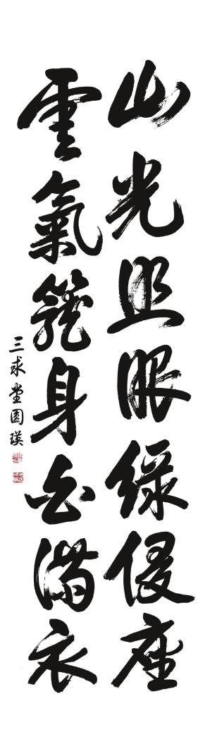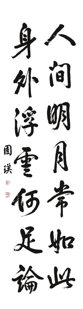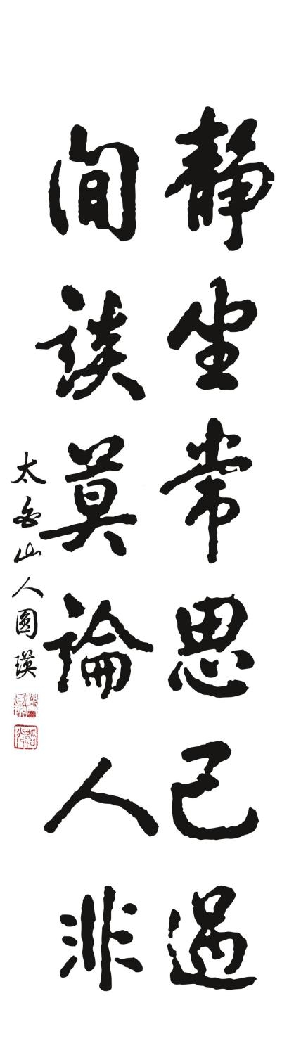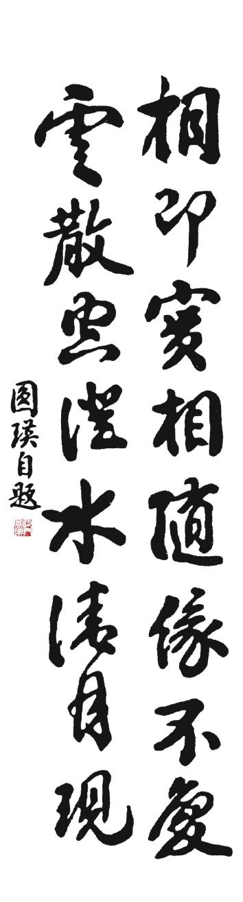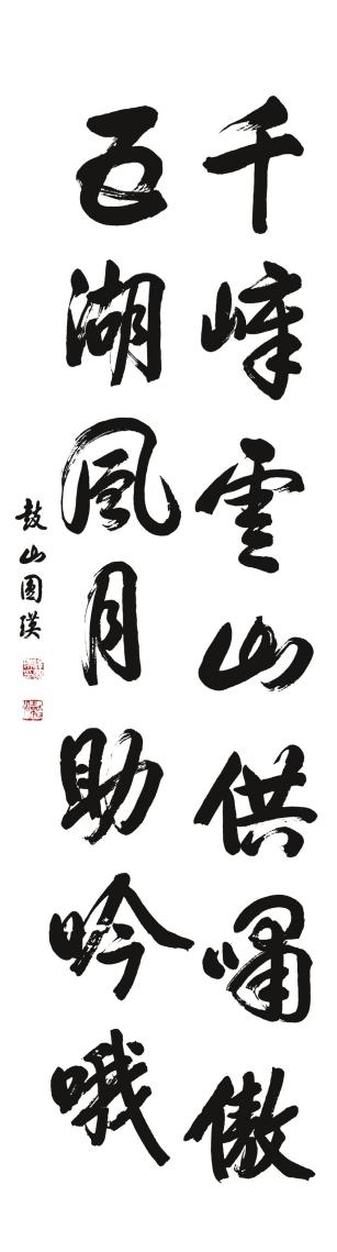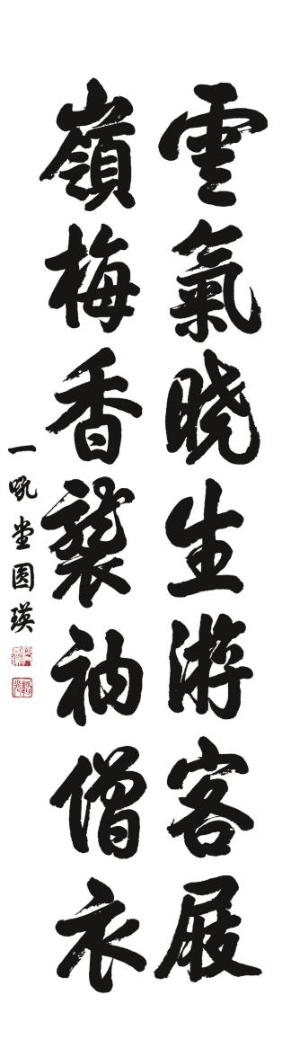 浙江、上海、江蘇、福建的許多名山名剎中都有圓瑛大師的題字碑刻,除此之外,大師還常應(yīng)友人信眾之囑,書寫對(duì)聯(lián)、中堂相贈(zèng),留下大量的楹聯(lián)墨跡。如“巖前倚仗看云起,松下橫琴待月來”、“千嶂云山供嘯詠,五湖風(fēng)月助吟哦”等等,不僅文字清新,對(duì)仗工穩(wěn),情懷高雅,就書寫看來,筆畫厚實(shí),結(jié)體自然,濃淡有致,氣脈一貫,端莊正大,且寫作俱佳,文采斐然,辭藻華美,此非一般書家所能達(dá)到的。