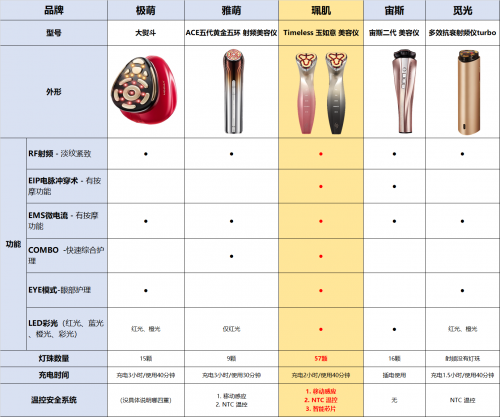 外觀設(shè)計上,五款美容儀造型各不相同,風(fēng)格各異(見上圖)。