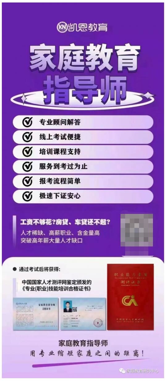 為響應國家政策,扶持行業(yè)發(fā)展,培養(yǎng)更專業(yè)的家庭教育人才,惠及更多家庭,全國《家庭教育指導師》培訓考核單位,現(xiàn)面向全社會招生!此次立法提到的《家庭教育指導師》究竟是怎樣的?怎么成為《家庭教育指導師》,以及就業(yè)前景和薪資待遇如何,大家跟著K仔一起來了解下: