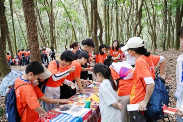 啟動儀式結(jié)束后,眾人開啟全長6KM的森林徒步之旅,出發(fā)前往終點環(huán)山秀坪。在松濤、鳥鳴的森林背景中,柏樂口腔在沿途森林體驗站里,設置了“琴茶書畫”等雅致體驗互動,讓徒步愛好者們能更好的沉浸其中,打開“五感”。