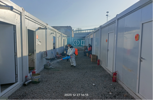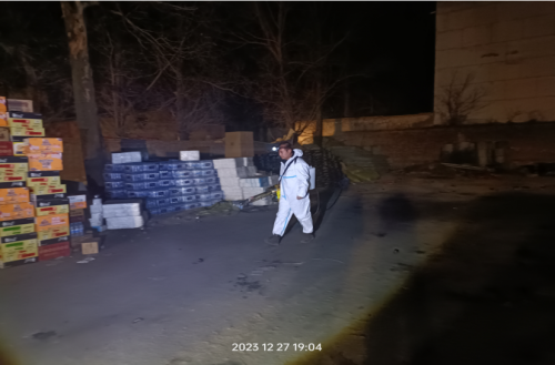 2023年12月27日下午14:00物資入庫后,在縣疾病預(yù)防控制中心指揮部的統(tǒng)一安排下,環(huán)球應(yīng)急救援西部指揮中心馮建武指揮長,紀(jì)委書記植鵬的帶領(lǐng)消殺人員植、陳勇、馬玉蘭、王文杰、李金鵬、溫世卓、張翔、馮佳博、曾建成、齊洪濤、賀明等同志,顧不上休息,立即來到積石山縣劉集鄉(xiāng),投入到各村安置點的環(huán)境消殺,對集中安置點地面、垃圾堆、廁所等易生病菌的地方進(jìn)行噴曬,殺滅病菌,對安置點板房門、窗、屋內(nèi)等空間進(jìn)行噴曬,預(yù)防病菌生長。