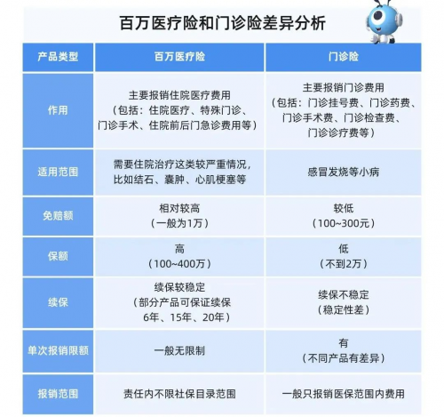 2.百萬(wàn)醫(yī)療險(xiǎn)和門(mén)診險(xiǎn)有什么區(qū)別?