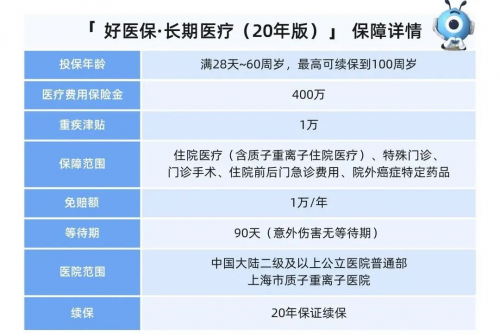 它可以報(bào)銷(xiāo)住院醫(yī)療費(fèi)用,每年高達(dá)400萬(wàn)報(bào)銷(xiāo)額度。