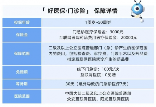 它的保障范圍廣,涵蓋線(xiàn)下二級(jí)及以上公立醫(yī)院門(mén)急診各項(xiàng)必要醫(yī)療費(fèi)用,包括藥品、檢查、治療、診療、門(mén)診手術(shù)和急診費(fèi)用,每年最 高報(bào)銷(xiāo)3000元。