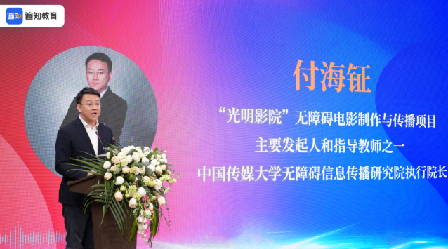 “光明影院”無障礙電影制作與傳播項(xiàng)目主要發(fā)起人和指導(dǎo)老師之一、中國(guó)傳媒大學(xué)無障礙信息傳播研究院執(zhí)行院長(zhǎng)付海鉦精彩致辭