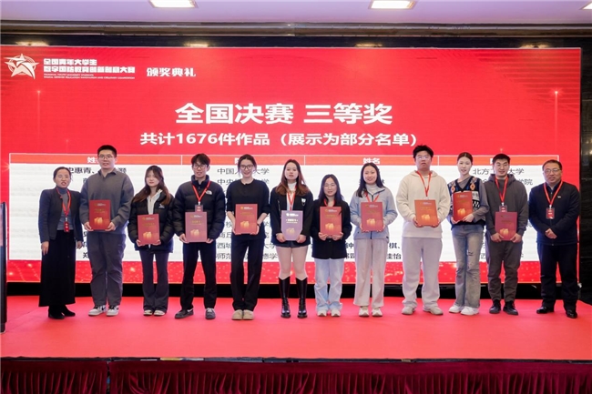 頒獎(jiǎng)環(huán)節(jié)分四個(gè)篇章隆重進(jìn)行。國(guó)防大學(xué)教授韓旭東、中國(guó)信息協(xié)會(huì)會(huì)員部主任張鳳英為獲得三等獎(jiǎng)的選手頒獎(jiǎng),他們寄語(yǔ)獲獎(jiǎng)?wù)咭^續(xù)保持進(jìn)取精神,在創(chuàng)新道路上砥礪前行。