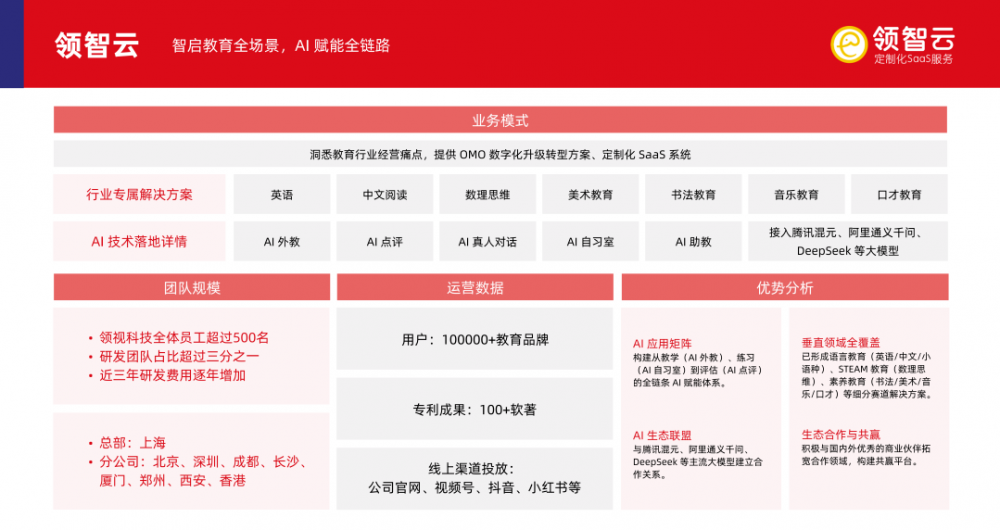 服務(wù)超10萬家教育機構(gòu),涵蓋英語、中文閱讀、數(shù)理思維、美術(shù)教育、書法教育、音樂教育、口才教育等細分賽道,形成可復(fù)制的跨學(xué)科賦能模型。