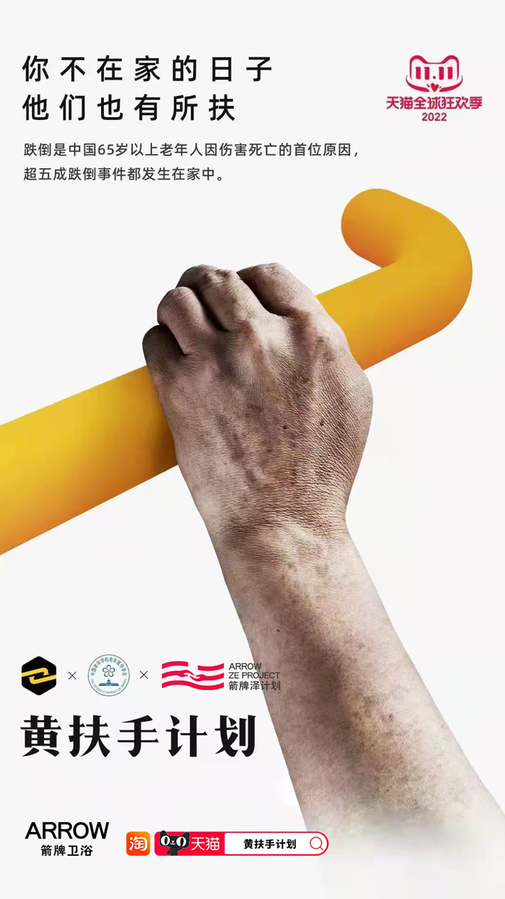 一直以來,箭牌澤計劃都在呼吁社會能夠更多的關(guān)注老年人的健康生活,2022年雙十一,天貓聯(lián)合中國老年學(xué)會和老年醫(yī)學(xué)學(xué)會、箭牌衛(wèi)浴、箭牌澤計劃共同發(fā)起“黃扶手計劃”,向社會送出5萬個適老扶手,給老年人帶去精神和生活的支柱力量。