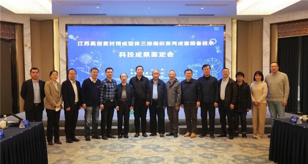 2023年1月12日,受中國紡織工業(yè)聯(lián)合會委托,中國紡織機(jī)械協(xié)會在江蘇省鹽城市組織召開了由東華大學(xué)與江蘇高倍智能裝備有限公司共同研發(fā)的“復(fù)材預(yù)成型體內(nèi)環(huán)軌道三維編織系列成套裝備及技術(shù)”項(xiàng)目科技成果鑒定會。