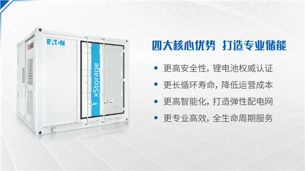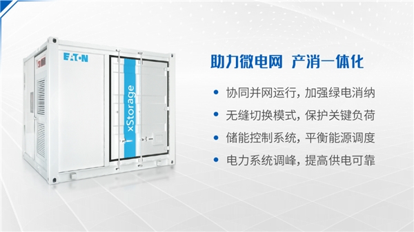 儲能系統(tǒng)調(diào)節(jié)靈活、響應速度快,是優(yōu)質(zhì)的靈活性能源,正積極參與到各行業(yè)電力服務市場。伊頓 xStorageTM集裝箱微電網(wǎng)儲能系統(tǒng)產(chǎn)品憑借更高安全性、更高耐久性、更高智能化、更高效服務 4 大核心優(yōu)勢,助力工商業(yè)和可再生能源系統(tǒng)釋放節(jié)能減排潛力。