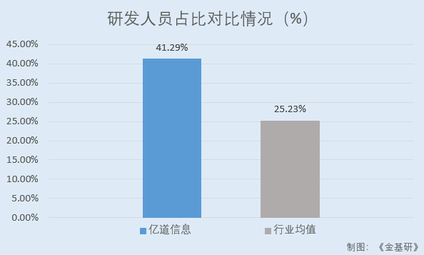 值得一提的是,億道信息的研發(fā)人員占比高于同行業(yè)可比公司均值。