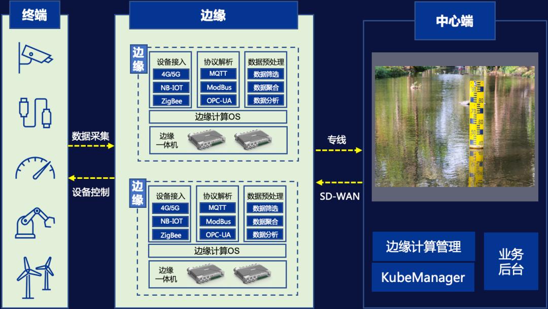 水利信息化建設(shè),由于水利工程特殊性,在邊緣側(cè)物聯(lián)設(shè)備數(shù)量多,采集數(shù)據(jù)量龐大,導(dǎo)致中心測分析和存儲壓力不斷增加。深信服基于“本地自治、云邊協(xié)同、安全可靠、統(tǒng)一運維”的建設(shè)理念,構(gòu)建水利感知邊緣分中心,可部署在四亂監(jiān)管、非法排污、水位監(jiān)測、水質(zhì)監(jiān)測、流量監(jiān)測、雨量檢測等眾多場景,就近計算、就近處理,讓這項工作變得更簡單、更便捷。
