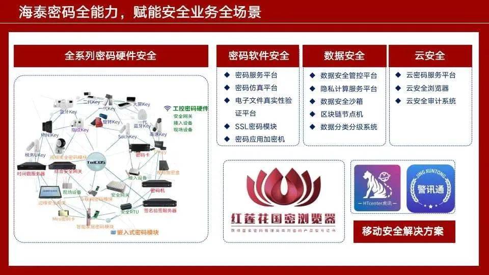 海泰方圓始終以“讓信息世界充滿信任”為使命,定 位于當(dāng)前機(jī)構(gòu)用戶的共性需求:密碼+數(shù)據(jù)+信創(chuàng),業(yè)務(wù)橫跨密碼安全、數(shù)據(jù)應(yīng)用、數(shù)據(jù)安全、物聯(lián)工控安全、移動安全、終端安全等多場景。