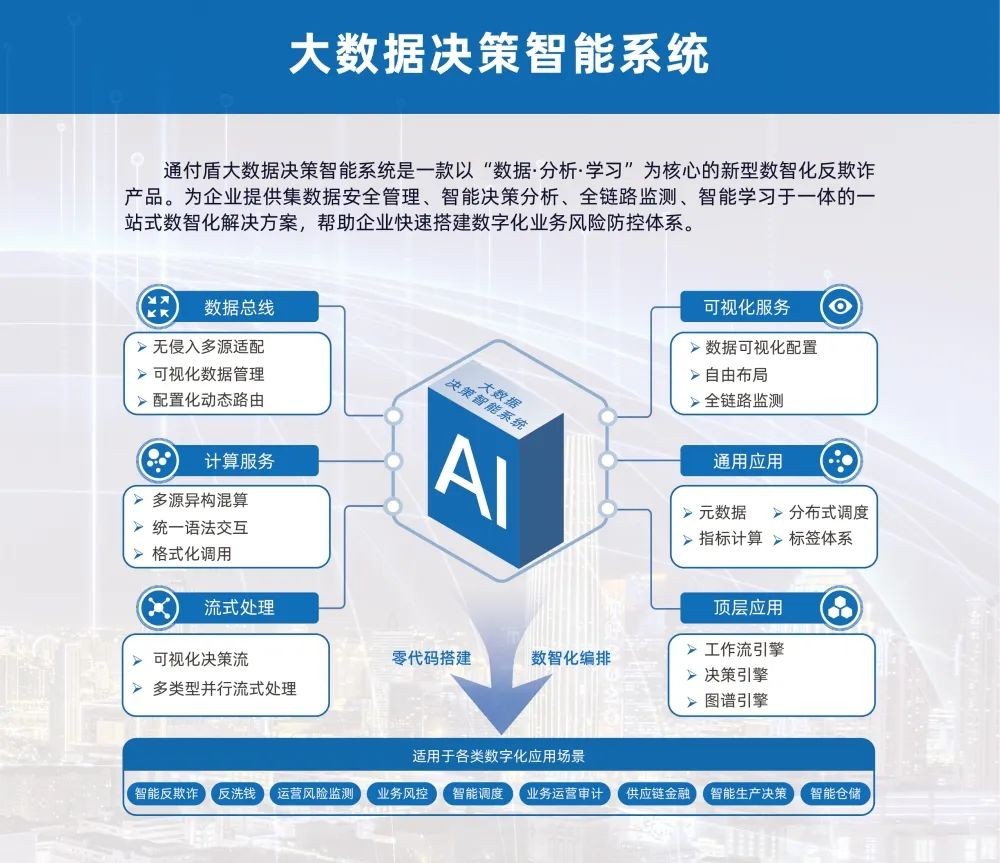 決策智能產(chǎn)品體系面向金融、能源、通信等多個領(lǐng)域企業(yè),協(xié)助客戶快速落地智能業(yè)務(wù):金融風(fēng)控、信貸審核、賬戶監(jiān)測等多種場景。通過大數(shù)據(jù)挖掘與機器學(xué)習(xí)等數(shù)字化技術(shù)不斷學(xué)習(xí)更迭,助力業(yè)務(wù)安全發(fā)展;通過決策軌跡分析、關(guān)聯(lián)交易及關(guān)系圖譜分析,呈現(xiàn)用戶交易鏈路、精準(zhǔn)定位資金流向、溯源風(fēng)險交易事件。