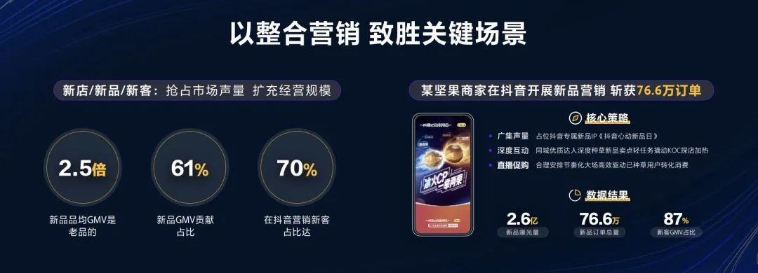 在抖音生活服務(wù),新品的GMV貢獻占比達到61%,新客占比達到70%。抖音營銷已成為許多商家推新品、拉新客的優(yōu)選。