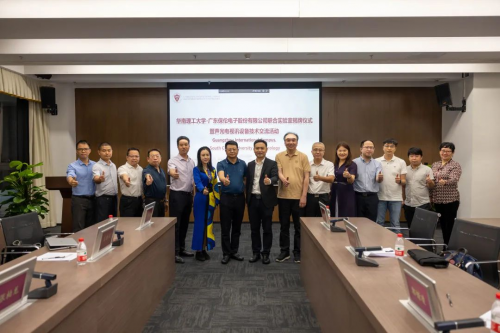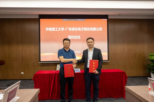 華南理工大學副校長、未來技術學院院長徐向民,華南理工大學科研院副院長江海,未來技術學院副院長舒琳,廣東省電子學會秘書長彭志聰,廣東省產學研合作促進會秘書長康麗娟,廣東保倫電子股份有限公司總裁趙定金、運營副總裁阮勝林,廣東聚智誠科技有限公司總經(jīng)理鄧韻霖等出席并見證簽約及揭牌。本次簽約儀式由舒琳主持。