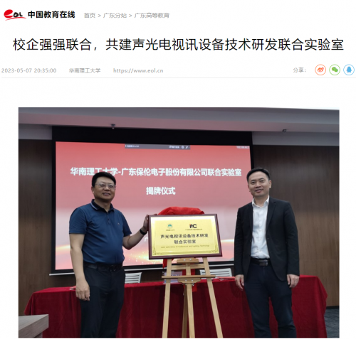 為進一步拓展校企合作的深度和廣度,5月7日上午,廣東保倫電子股份有限公司(itc)與華南理工大學未來技術學院共建的聲光電視訊數(shù)智產品聯(lián)合實驗室簽約暨揭牌儀式在華南理工大學廣州國際校區(qū)順利舉辦。本次合作簽約意義重大,標志著校企雙方在產教融合、協(xié)同育人的合作中邁出了堅定的一步,著眼于打通從實驗室到產業(yè)化的“最后一公里”,引領行業(yè)高質量發(fā)展。