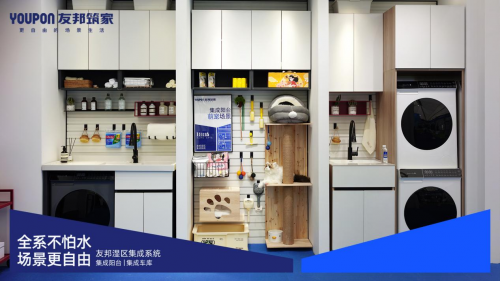 本次展會上,友邦吊頂創(chuàng)新推出“全系不怕水,場景更自由”的友邦濕區(qū)集成系統(tǒng)。