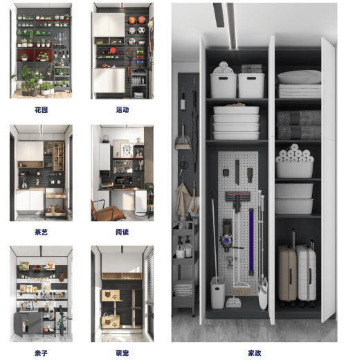 此外,基于“收納更極致、場景更自由、安裝更高效”的陽臺整體解決方案,集成陽臺還實現(xiàn)立體收納、10cm極窄收納和75mm可調(diào)節(jié)收納,滿足不同物品的擺放需求,做到不浪費每一寸空間,將空間收納做到極致。