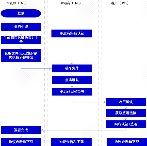 而今麥郎在企業(yè)的運(yùn)輸管理系統(tǒng)中集成了法大大后,承運(yùn)商便可以在系統(tǒng)中提前設(shè)置自動(dòng)簽署,司機(jī)裝車完畢后點(diǎn)擊確認(rèn)即可發(fā)車。同時(shí),司機(jī)也無(wú)需再隨身攜帶紙質(zhì)文件,到達(dá)目的地后直接與經(jīng)銷商/倉(cāng)庫(kù)在線確認(rèn),真正有效地避免了因文件遺失引發(fā)的各類問(wèn)題。