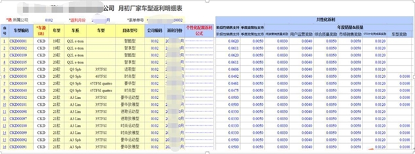 具體包括:叩車扣點(diǎn)返利,所有共性化返利,共性化返利中的增減配置返利。