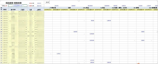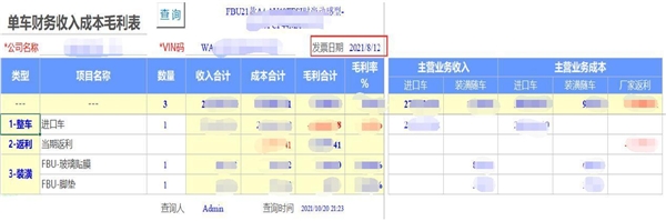 2.任意時(shí)間段按車架號的財(cái)務(wù)口徑毛利查詢表。