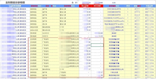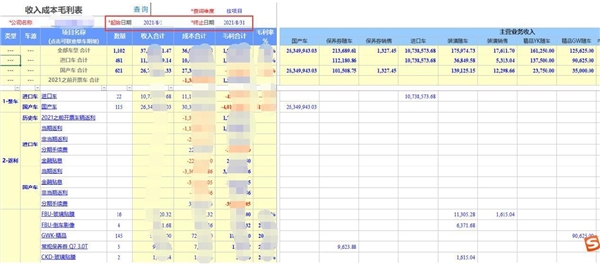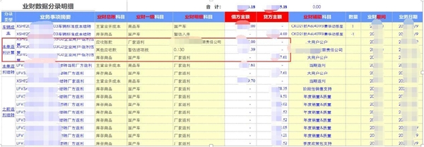 這上面每臺車的收入成本和毛利數(shù)據(jù),都是直接來源于系統(tǒng)中的會計(jì)分錄。