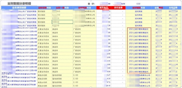 由于可能有系統(tǒng)初始化之前已銷售車輛的返利到賬,系統(tǒng)特別設(shè)置了2021之前開票車輛返利明細(xì)科目,便于數(shù)據(jù)區(qū)分。