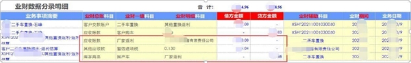 這里是一臺車銷售結(jié)案的標(biāo)志,這臺車所有相關(guān)聯(lián)的業(yè)務(wù),都集中在這里生成會計(jì)分錄。包括以下部分: