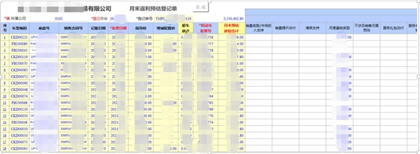 2) 按月、按店、按車型維護(hù)實(shí)時(shí)預(yù)估車型月度返利表。