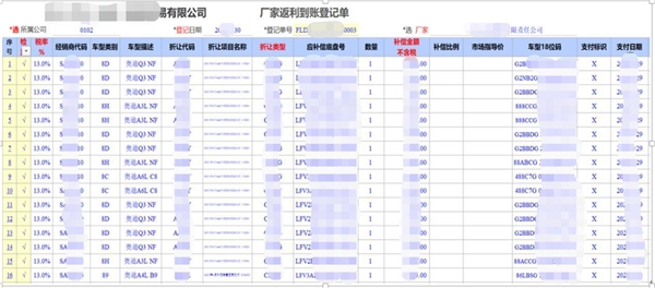 大用戶購車。系統(tǒng)單據(jù)為:客戶發(fā)票登記單。自動生成返利數(shù)據(jù),自動生成會計(jì)分錄。