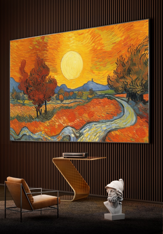 L8K的主機(jī)機(jī)身設(shè)計(jì)輕薄、靈活,屏幕薄至24mm,如壁畫般無縫貼合墻面,輕松融入任何裝修環(huán)境,詮釋了科技和家居美學(xué)的完美結(jié)合,堪稱家中“藝術(shù)展品”。