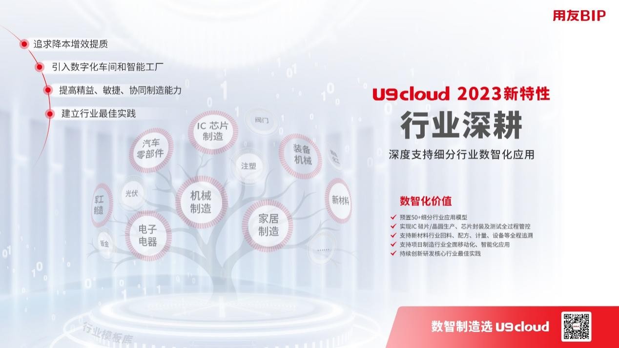 “一體化是我們?nèi)ツ甑暮诵?,包括設(shè)計制造一體化、計劃執(zhí)行一體化、項(xiàng)目制造一體化、制造服務(wù)一體化,幫助企業(yè)經(jīng)營核算精細(xì)化財務(wù)健康度,為上市打下了堅實(shí)的數(shù)據(jù)基礎(chǔ)?!庇糜丫W(wǎng)絡(luò)副總裁傅毅解釋說,“如今,U9 cloud更多通過融入用友BIP平臺、行業(yè)深化、數(shù)字化運(yùn)營、一體化應(yīng)用和智能化,體現(xiàn)出數(shù)據(jù)驅(qū)動的價值,幫助管理者更容易實(shí)現(xiàn)業(yè)務(wù)穿透,在降本增效的同時預(yù)測風(fēng)險,管理決策?!?/span>