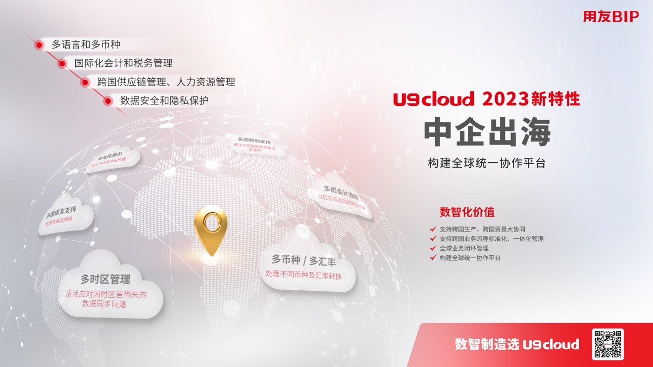 實(shí)際上,新發(fā)版的U9 cloud還重點(diǎn)強(qiáng)化了六大特性:數(shù)據(jù)驅(qū)動、行業(yè)深耕、智能工廠、精細(xì)管控、中企出海、隨需應(yīng)變。其中隨著經(jīng)濟(jì)形勢的變化,中企出海無疑成了新的熱點(diǎn)。