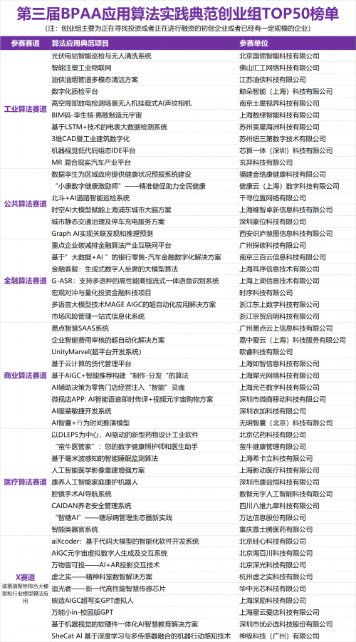 本屆BPAA大賽中,各算法項(xiàng)目團(tuán)隊(duì)除了在原有的公共算法、金融算法、醫(yī)療算法、工業(yè)算法、商業(yè)算法五大賽道開(kāi)展角逐,更特設(shè)聚焦大模型和行業(yè)模型算法應(yīng)用的X賽道。同時(shí),本屆大賽在前兩屆基礎(chǔ)上設(shè)置了創(chuàng)新、創(chuàng)業(yè)兩個(gè)參賽組別,為更多算法項(xiàng)目和團(tuán)隊(duì)提供展現(xiàn)自我和落地機(jī)會(huì)。